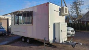 - Siekiant teikti mobilias maitinimo paslaugas, įsigyti maisto vagonėlį (priekabą) su virtuvės įranga, baldų komplektu, atsinaujinančiais energijos šaltiniais įrengta šildymo/šaldymo sistema.